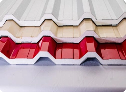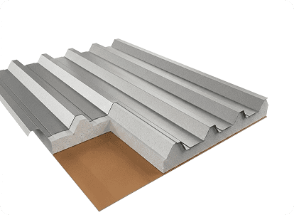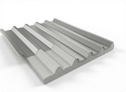 Camada superior em galvalume + isolante térmico EPS. Indicada para ambientes que exigem conforto térmico. Reduz variação de temperatura e melhora eficiência do ambiente.